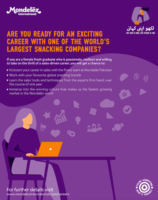 We created the launch campaign for Mondelēz Pakistan's Female Sales Trainee Program: Likho Apni Kahaani. The campaign included: Logo design & branding for the trainee program for digital & print media along with video series to introduce the program across digital media platforms in 2021 & 2022.